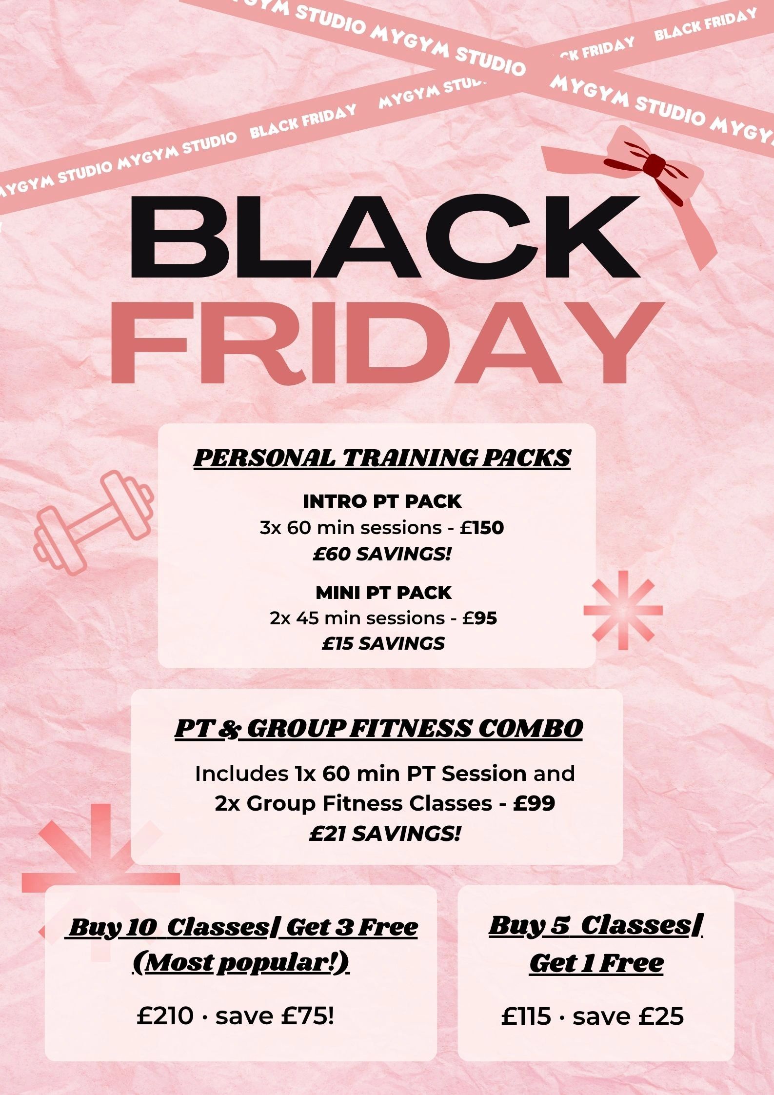 Our Black Friday deals are the perfect chance to invest in yourself at the best price of the year. Whether you want personalised coaching, motivating group classes, or a mix of both, you’ll save money while building healthy habits that last. Give yourself the boost you’ve been waiting for.